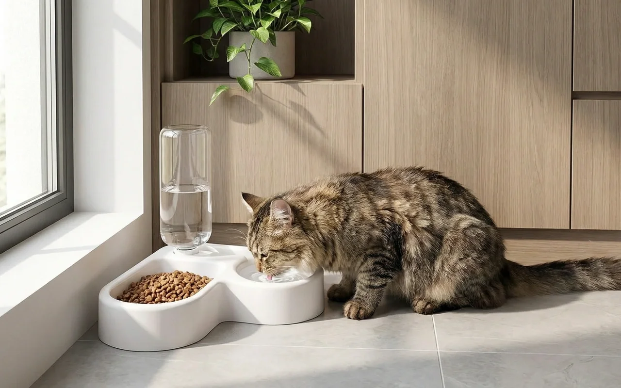Comedouro 2 em 1 com Bebedouro Automático Estação de Alimentação para Pets