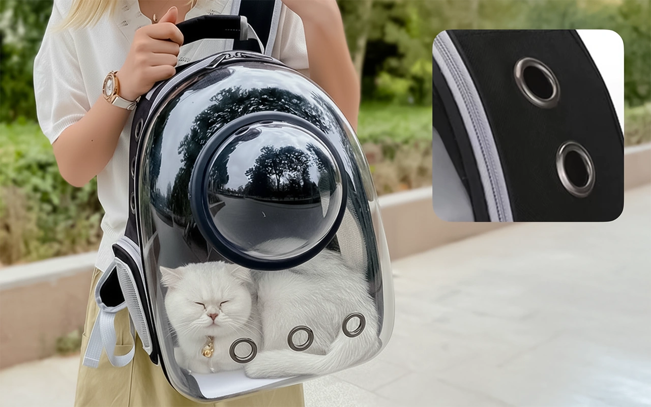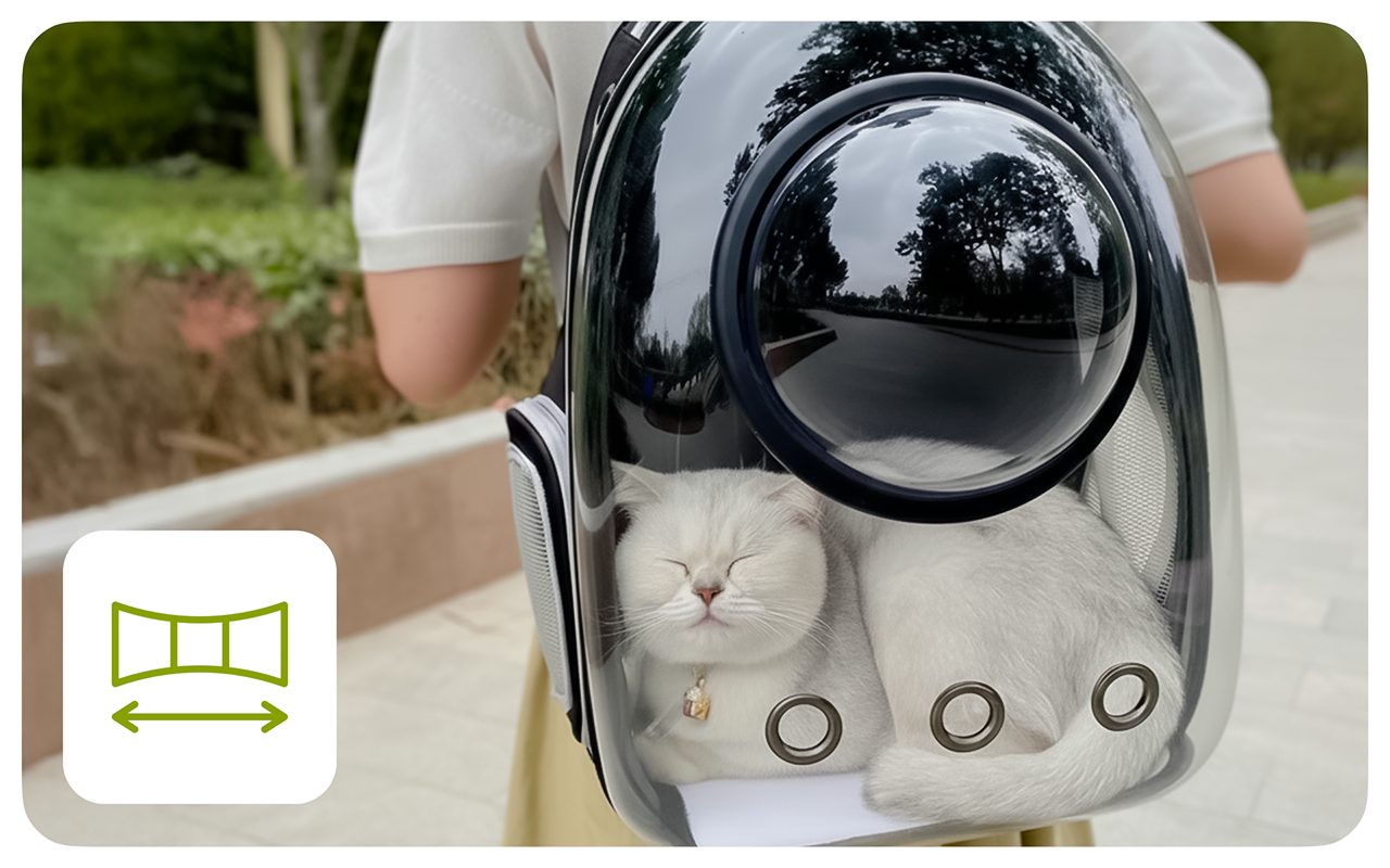 Levei meu gato rajado ao parque e ele ficou super relaxado nesse transporte. A janela grande é como uma TV para gatos! Os furos de ventilação realmente funcionam.