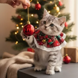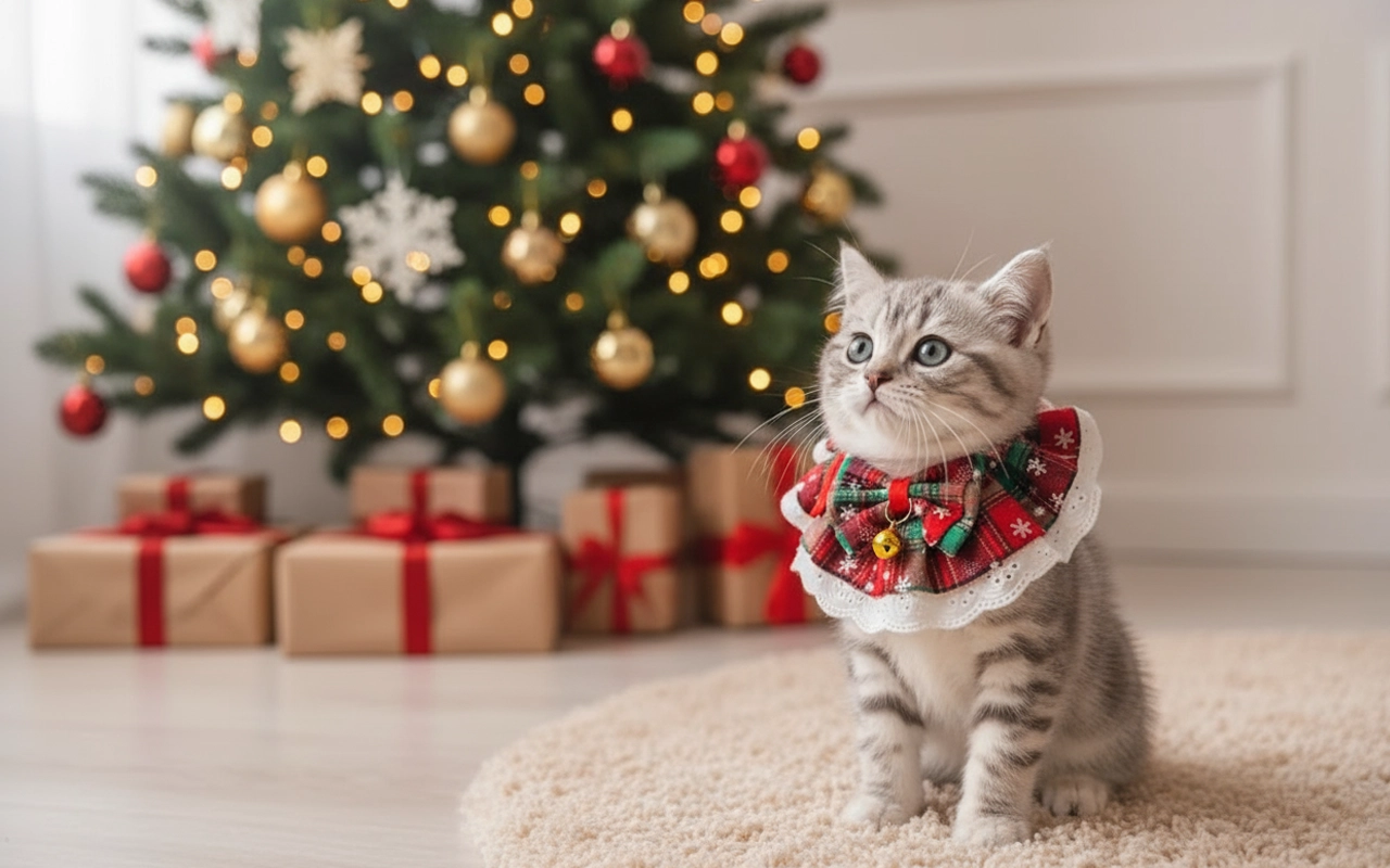 Coleira Babador Natalina para Gatos com Laço e Sino