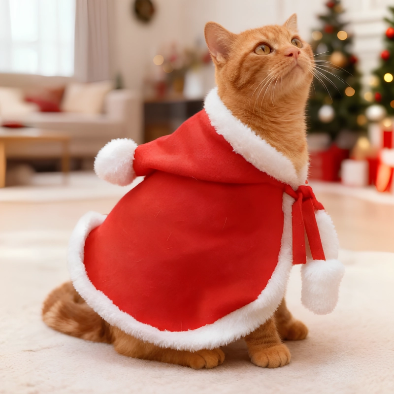 Fantasia de Natal para Gato – Capa com Capuz de Papai Noel