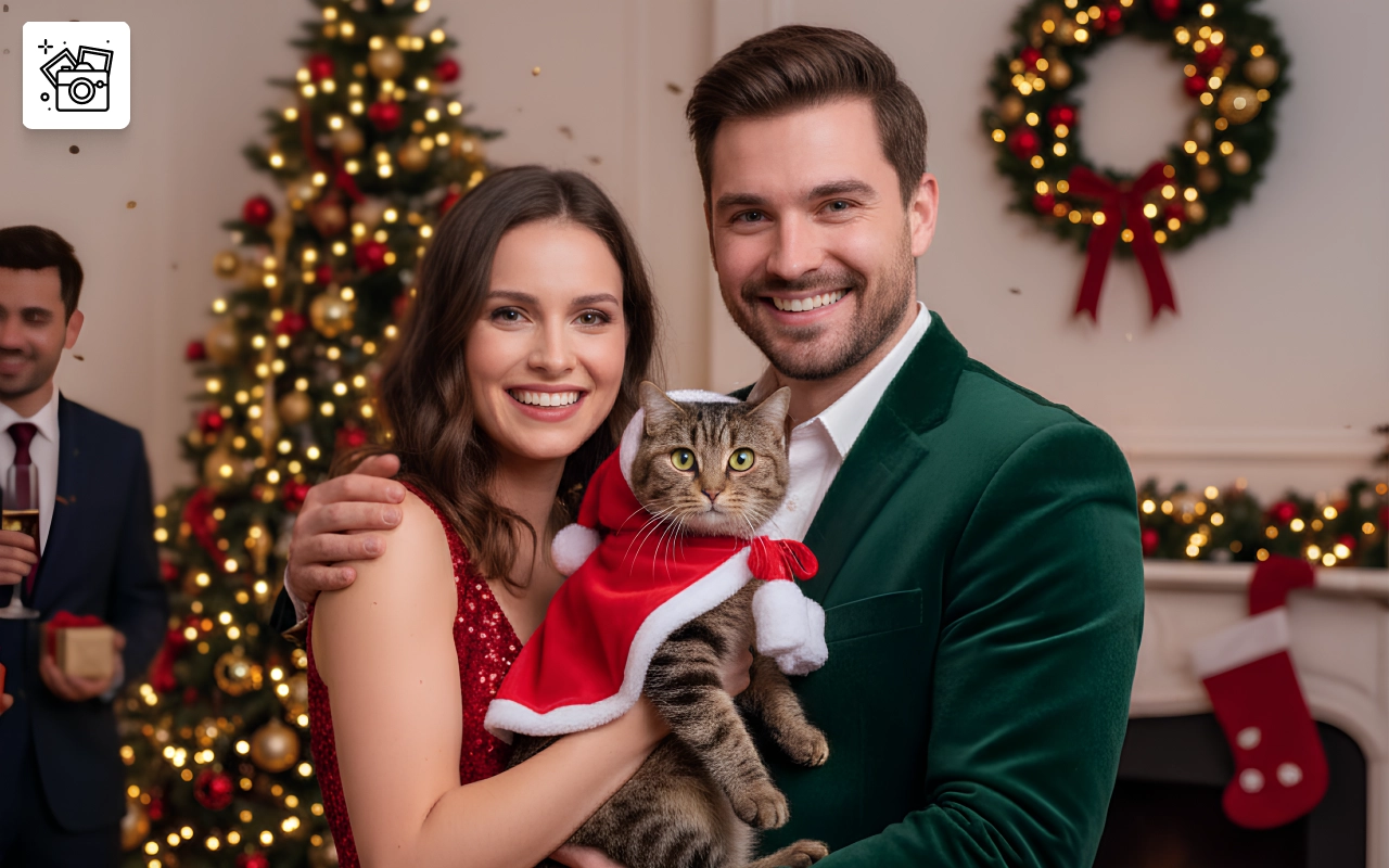 Todo mundo da família quis tirar selfie com nossa gatinha de capa. Sem coceiras, só uma gata feliz! Guardamos todas as fotos para o próximo ano.