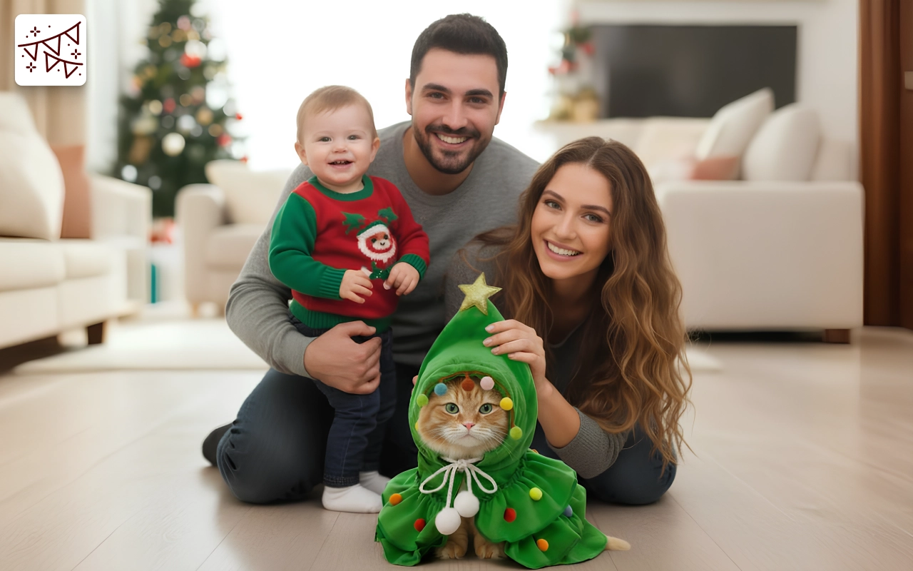 cat christmas tree costume, cat christmas hooded coat, cat christmas hooded cloak,