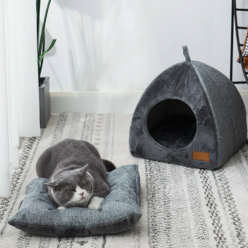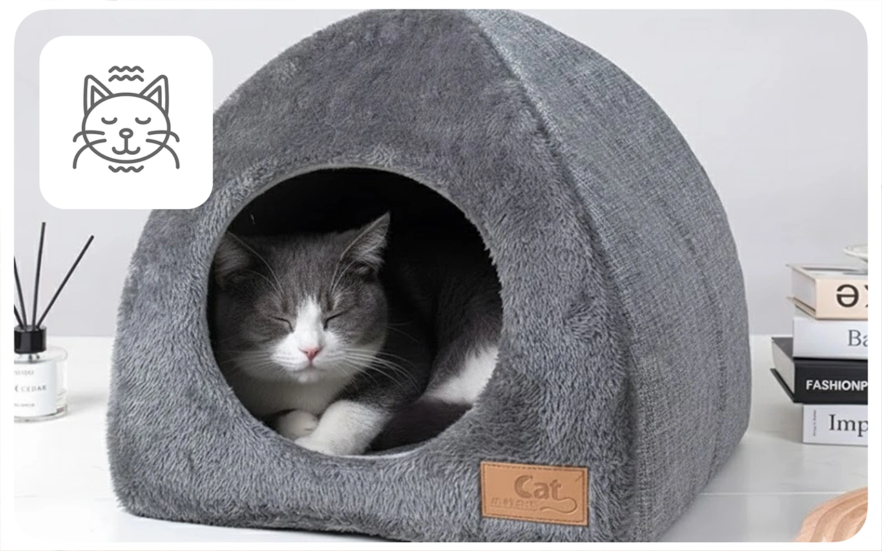O formato triangular cria privacidade, reduzindo rapidamente o estresse e a ansiedade. Os gatos se sentem protegidos dentro, aproveitando momentos de tranquilidade sempre que necessário.
