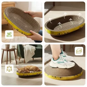 A cama para gatos Primdog traz alegria para todo felino brincalhão. Papelão ondulado resistente mantém garras afiadas longe de sofás e cadeiras. O formato aconchegante de tigela facilita o descanso e o alongamento.