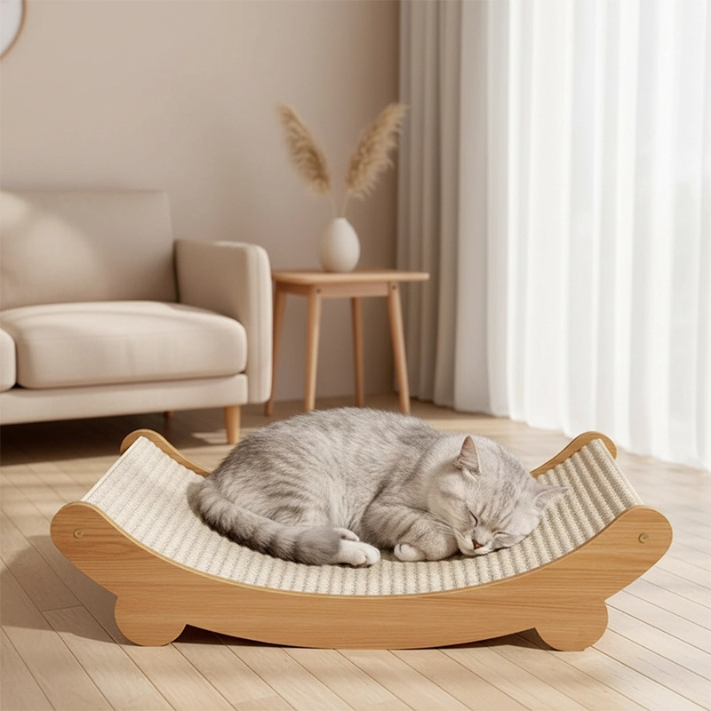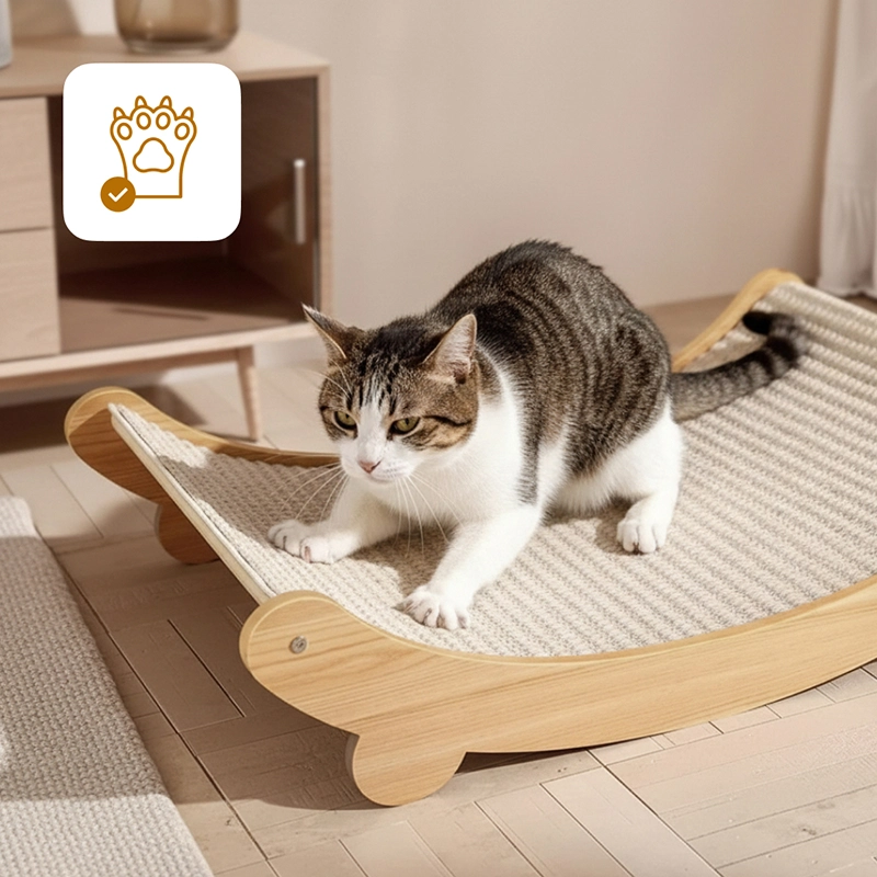 Cama de Madeira em Sisal para Arranhar Gatos Formato U