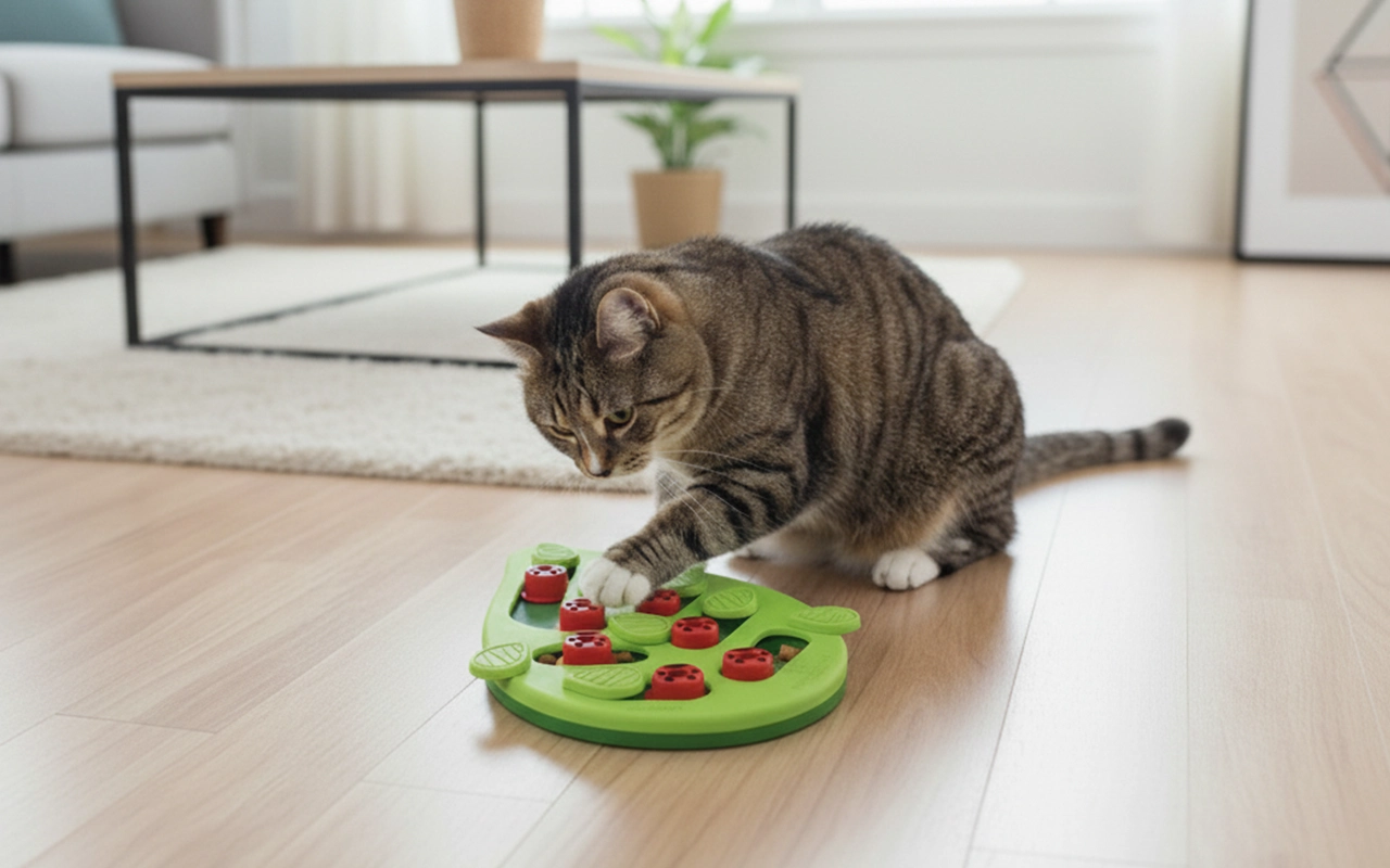 Brinquedo Quebra-Cabeça para Petiscos de Gato Alimentador Lento Interativo