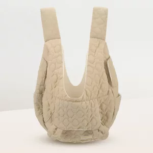 Adoro como é fácil colocar meu chihuahua aqui e sair para passear. Os bolsos laterais comportam facilmente os petiscos dela e meu celular.