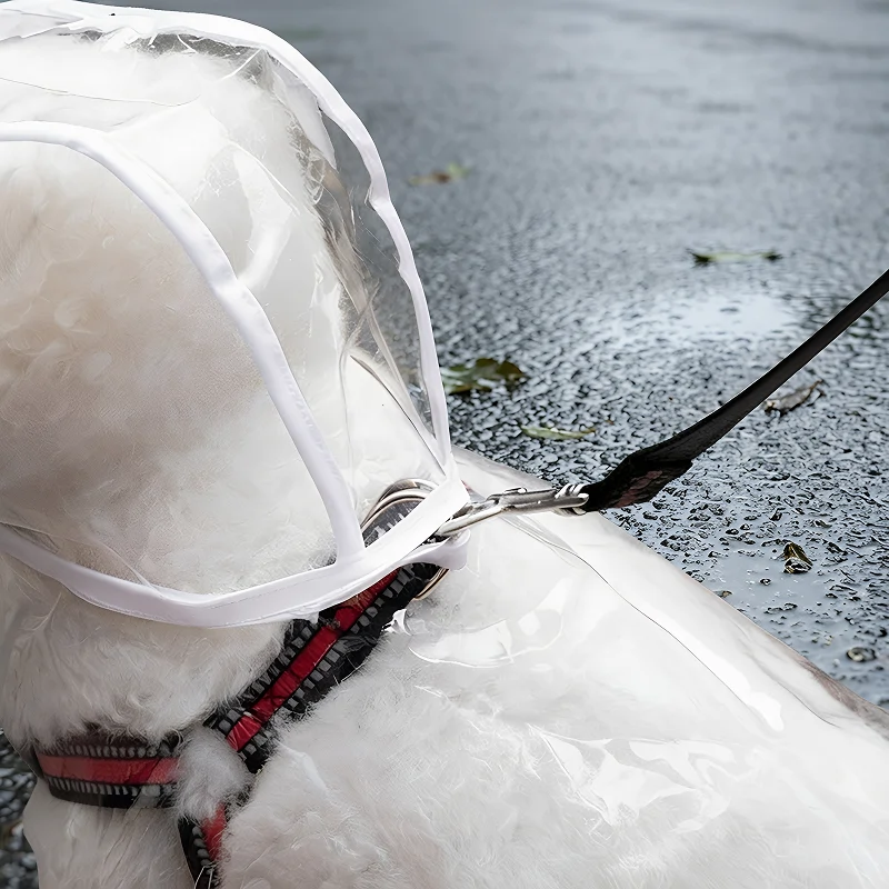 Passeios na chuva não são mais um problema. Meu cachorro pode se mover livremente e fica aquecido. O material transparente é divertido também.