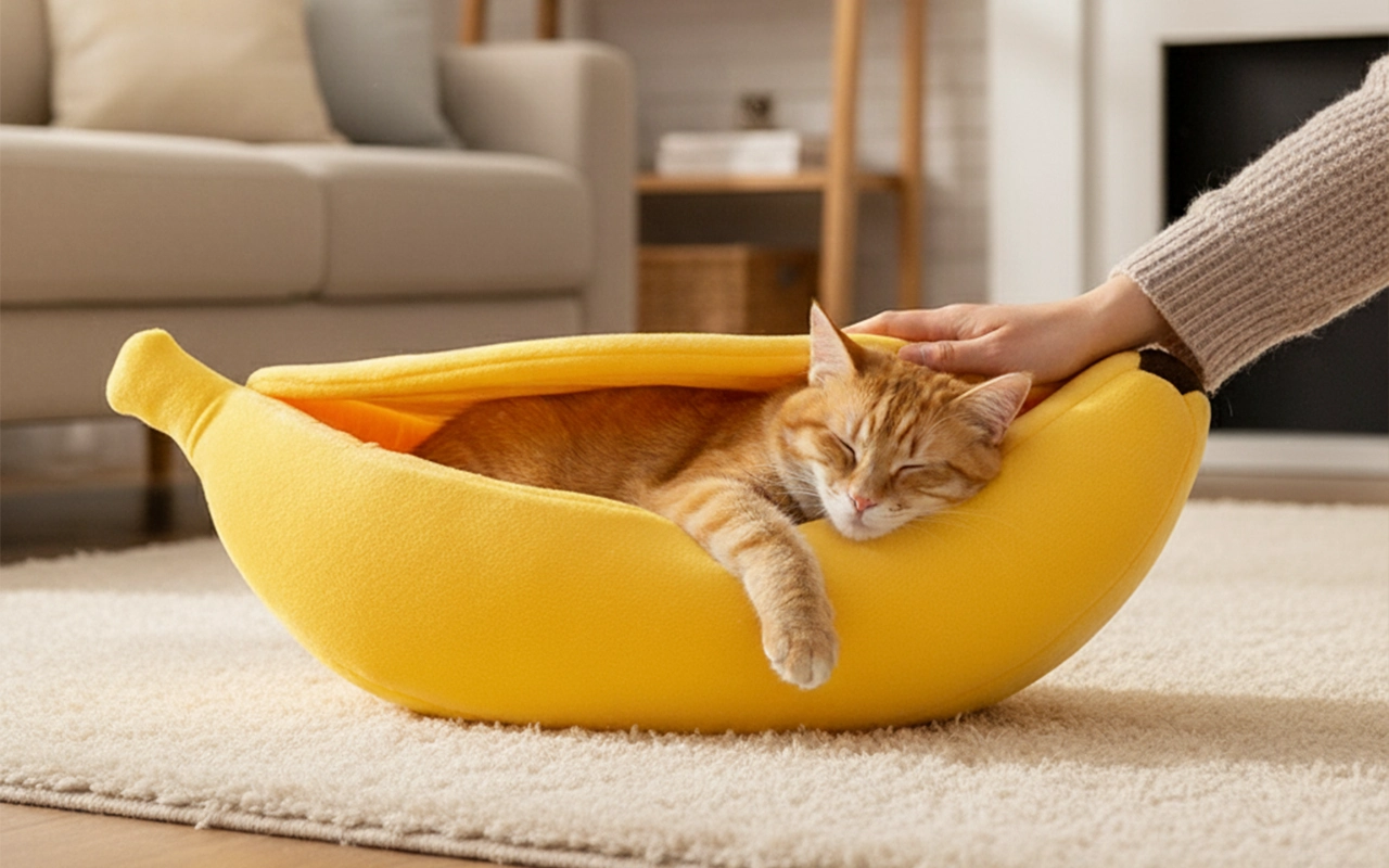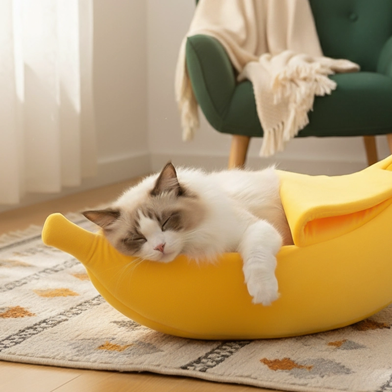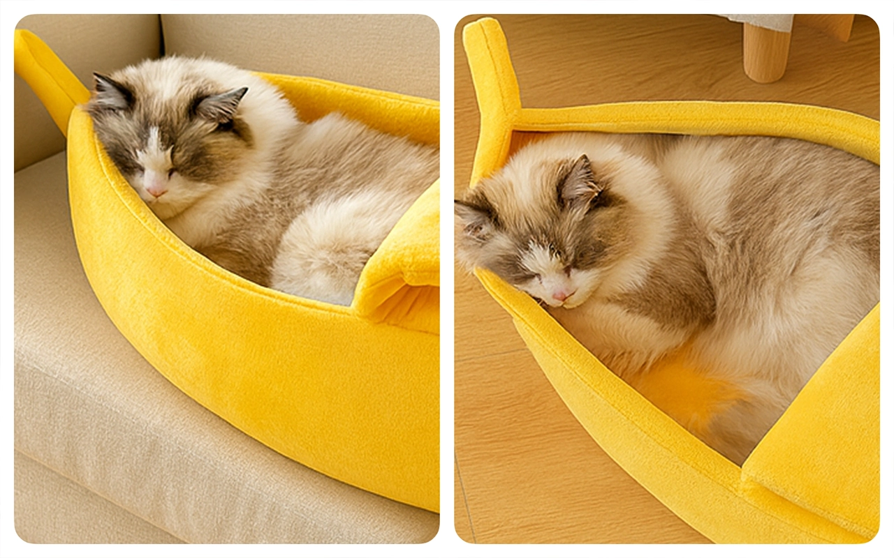 Cama Banana Fofa para Gatos – Ninho Aconchegante para Pets