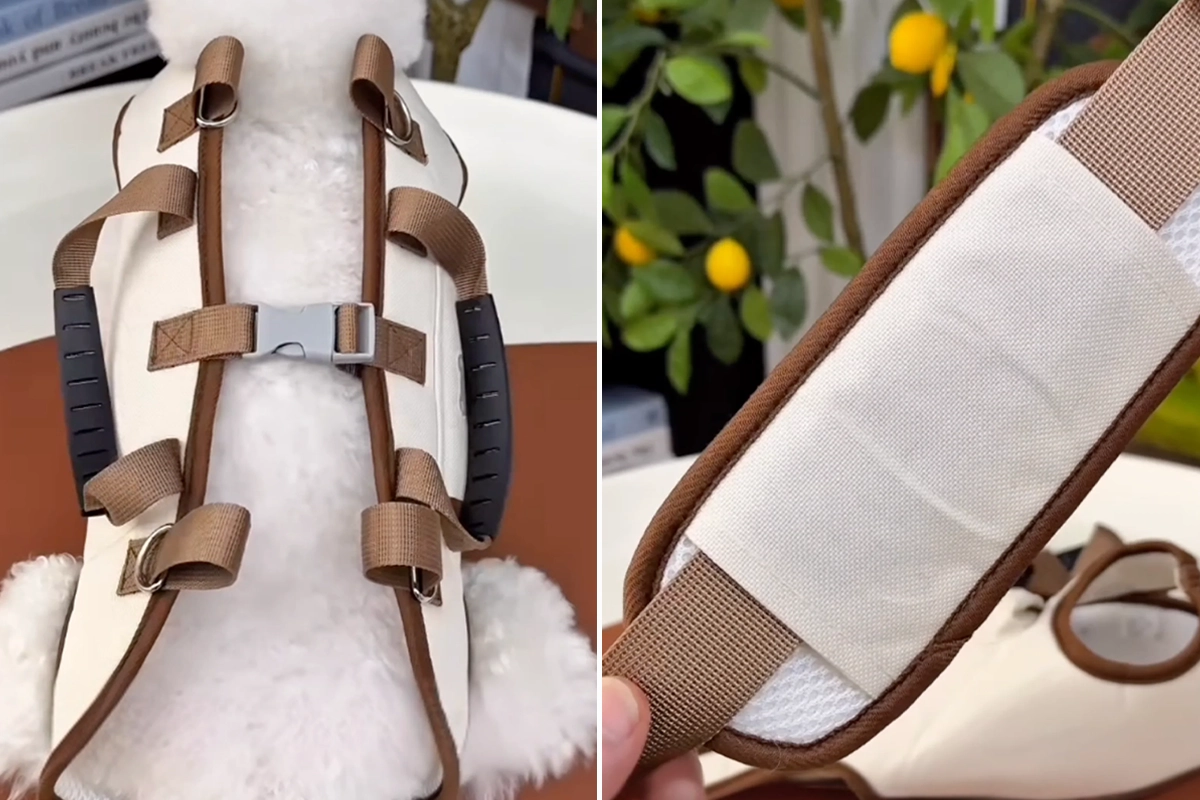 Alças confortáveis e meu cachorro cabe perfeitamente.