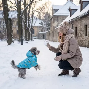 Há espaço suficiente sob o casaco para o suéter favorito do meu cachorro. É a combinação perfeita para manhãs realmente frias no inverno.