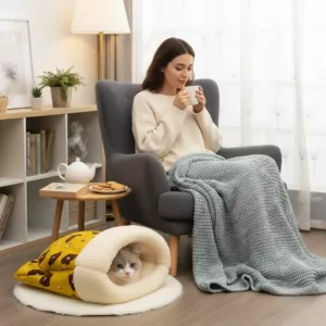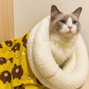 Esse saco aconchegante facilita para o meu gatinho tirar sonecas o dia todo. O tecido de pelúcia é super macio e o design fofo fica adorável na nossa sala de estar.