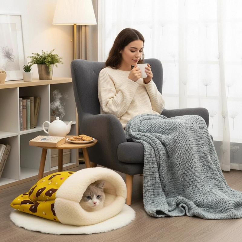 O formato fechado realmente faz minha gata se sentir segura. Ela costumava sentir frio, mas com esta cama ela fica quentinha e dorme melhor do que nunca.
