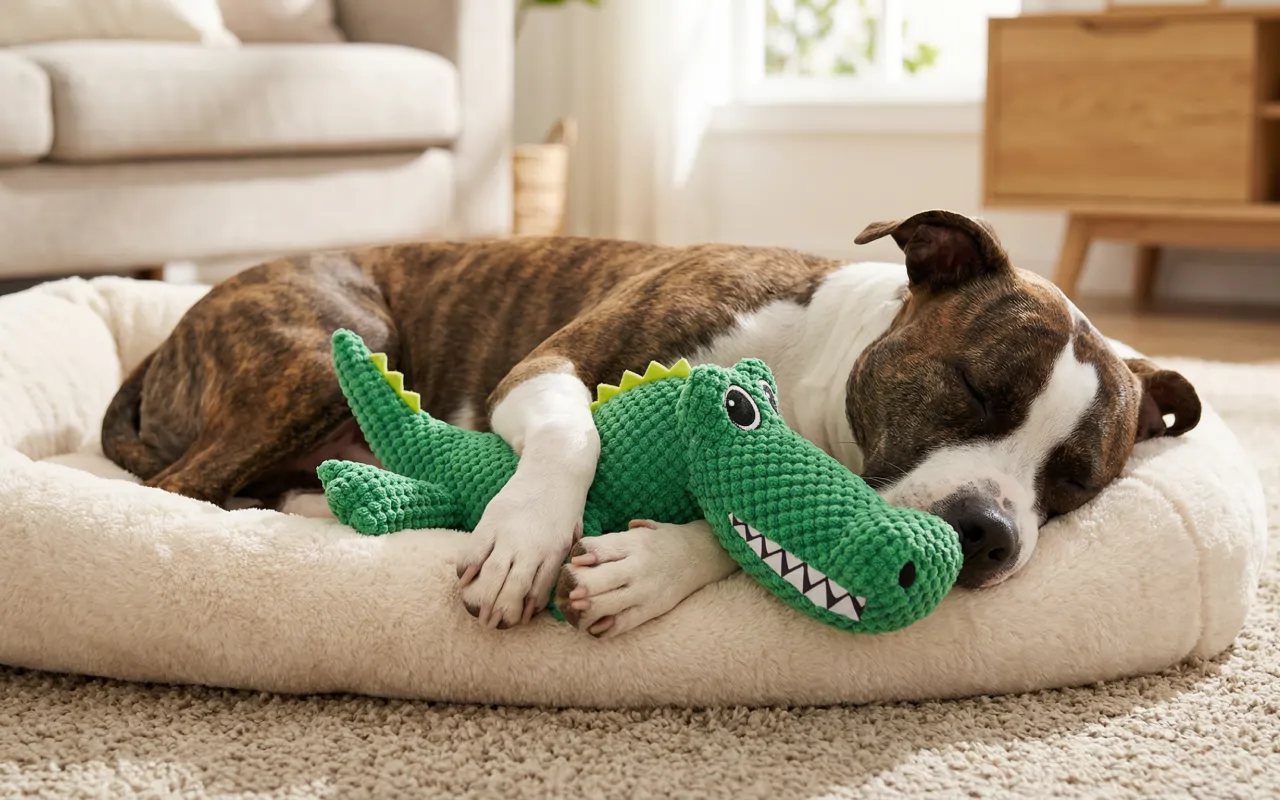 Meu cachorro e o novo crocodilo viraram melhores amigos. O tecido é super macio e ele dorme com o brinquedo toda noite. É adorável!