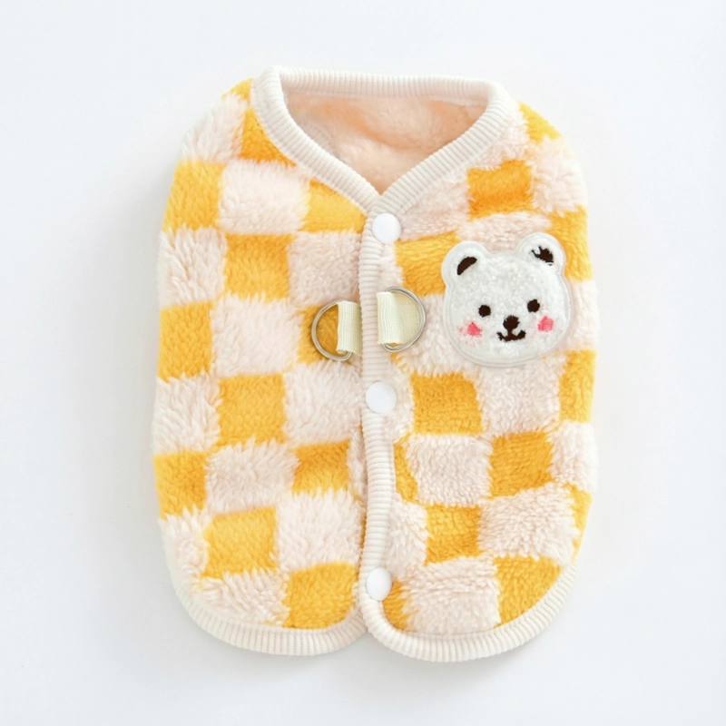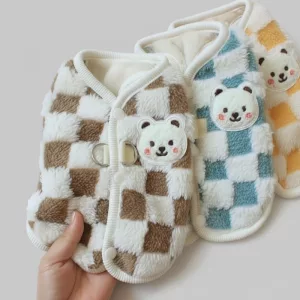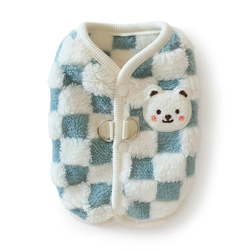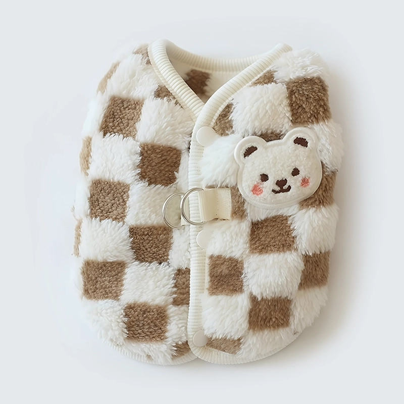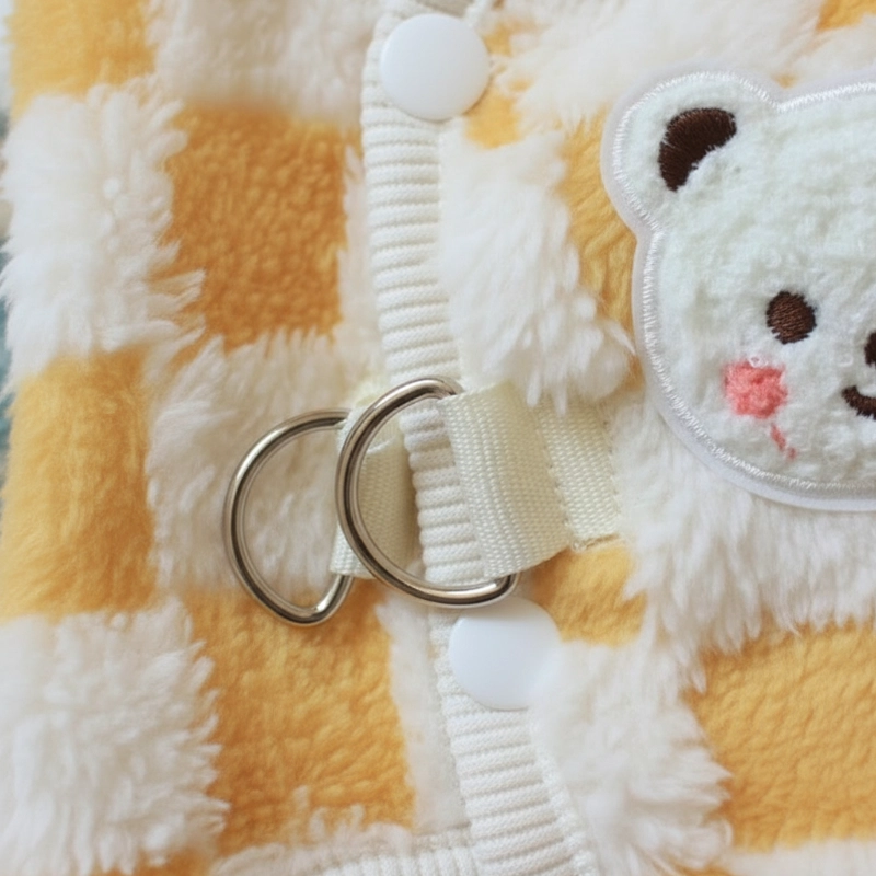 Minha cachorra adora seu novo colete! Mantém ela aquecida nos passeios frios e a estampa de urso é super fofa. Ela realmente fica animada para vestir agora.