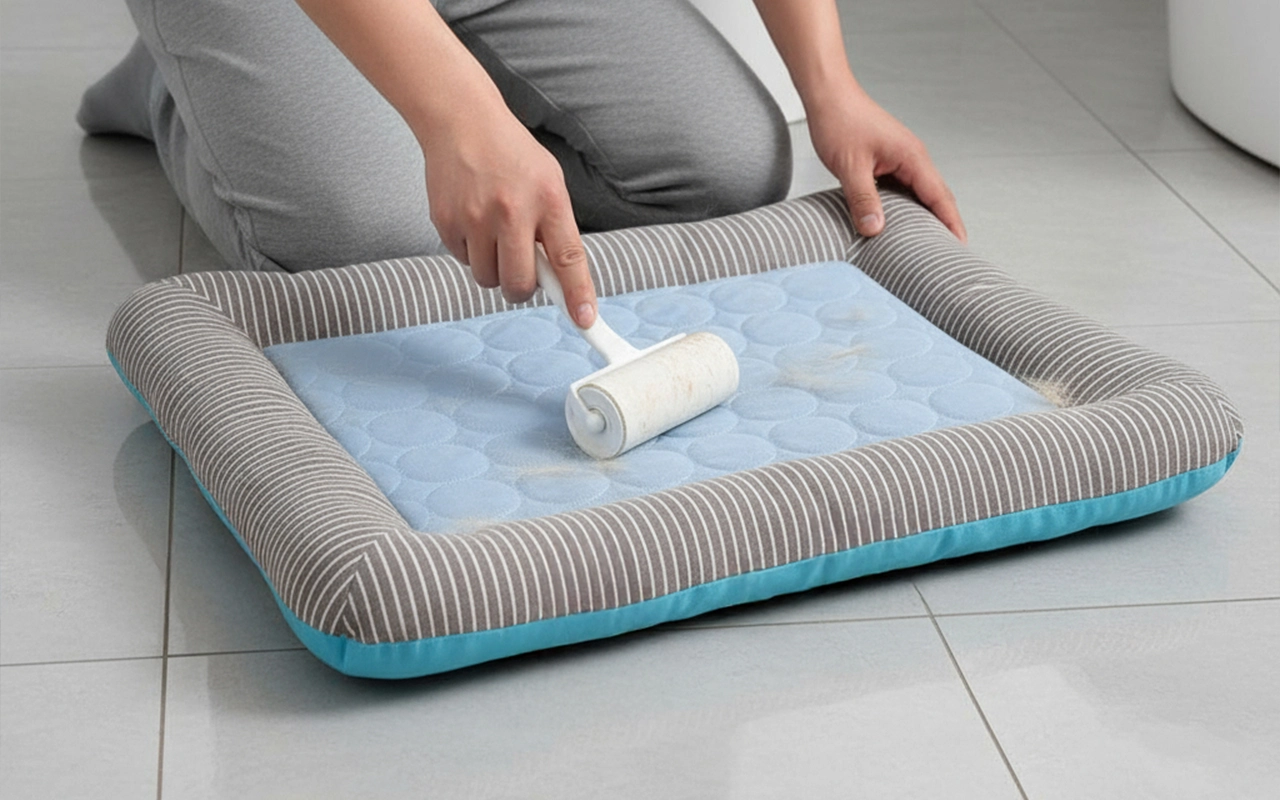 Ótimo para as tardes de verão. O tapete mantém meu cachorro refrescado e ele não fica ofegante. Limpar os pelos é super fácil!
