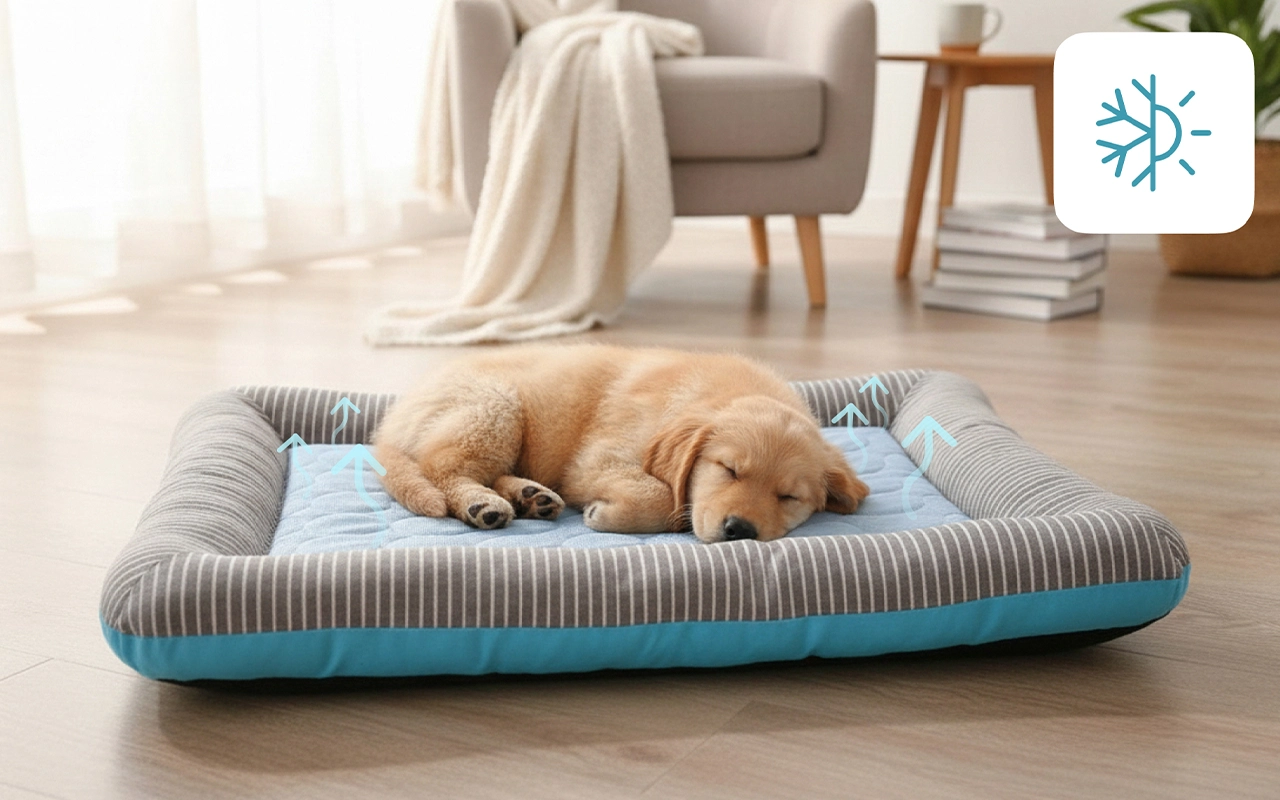 O calor se dissipa rapidamente do local de descanso favorito do seu pet. Materiais especiais incentivam o fluxo de ar, ajudando o corpo a se manter fresco e feliz.