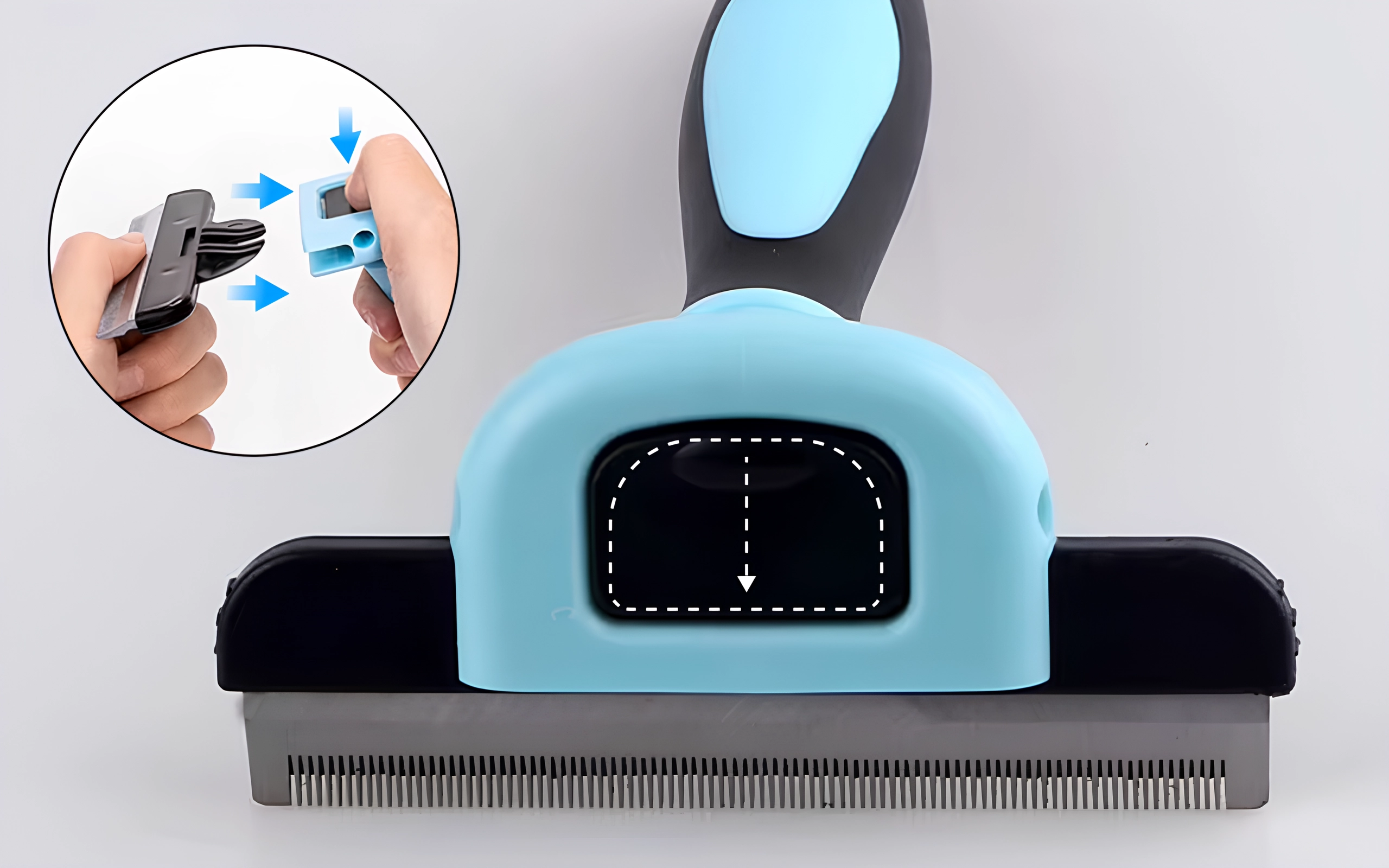 Limpe rapidamente após cada uso com a lâmina removível. Mantenha sua escova Primdog higiênica e pronta para qualquer sessão futura.
