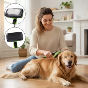 Escovar o meu golden retriever agora leva metade do tempo! Ela até abana o rabo quando uso a escova. Meu sofá também fica muito mais limpo.