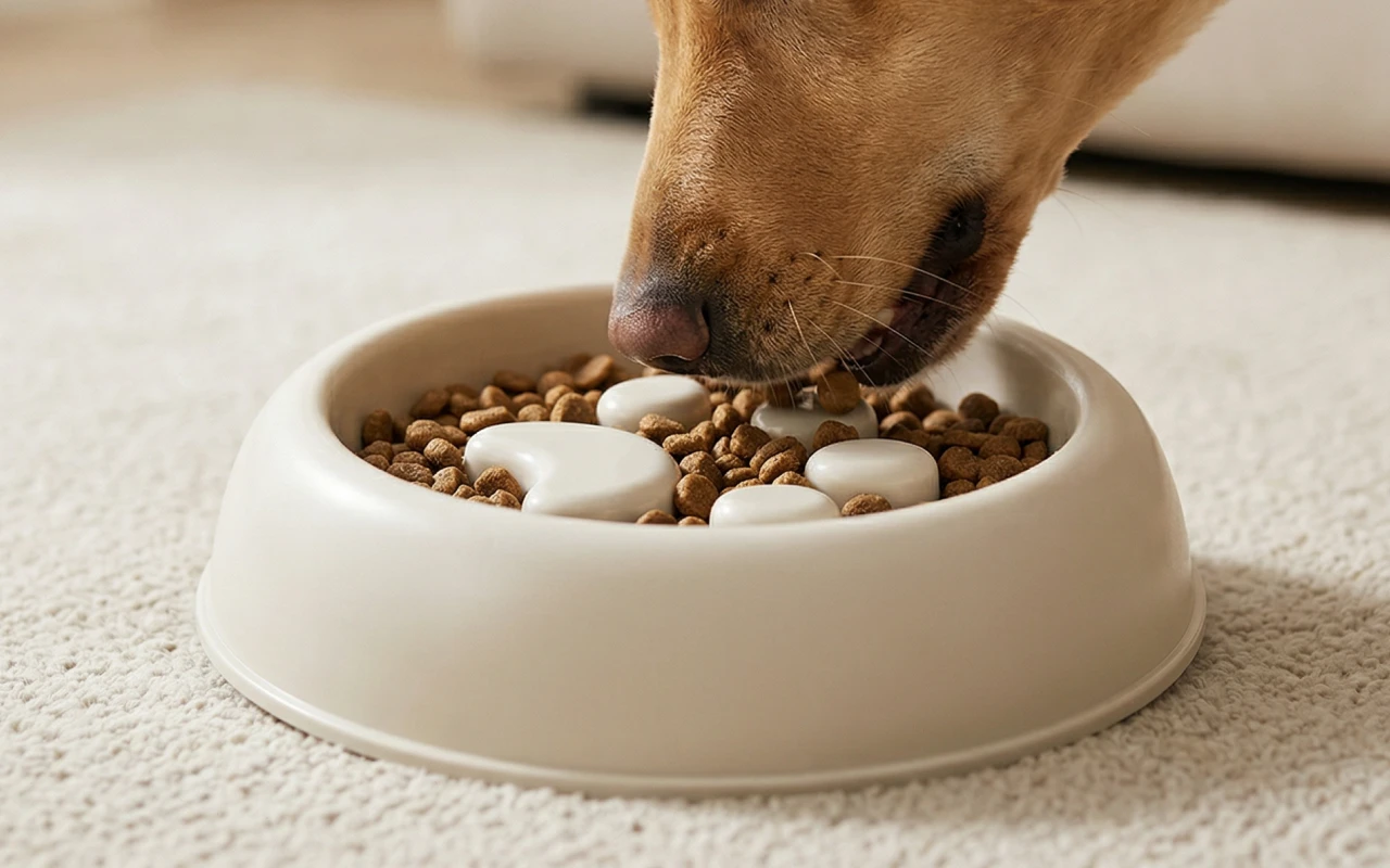 Meu Labrador parou de engolir a comida depois que comprei isso. O labirinto realmente faz ele comer mais devagar, e a barriguinha dele parece muito mais feliz agora! Fácil de limpar também.