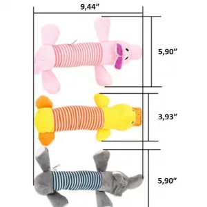 Cada brinquedo de pelúcia é recheado com um apito escondido dentro do corpo. O seu cão vai correr pela casa a carregá-lo na boca, deitar-se e brincar com ele. Estes brinquedos divertidos são adequados para cachorros de porte médio, ativos, que adoram apitar. Todos os brinquedos são feitos de material de lã macia, segura e duradoura. Eles duram mais tempo com menos sujeira. Várias formas de animais e cores vibrantes criam uma atmosfera única, acolhedora e fofa na sua casa. O seu cão vai adorar brincar com eles!