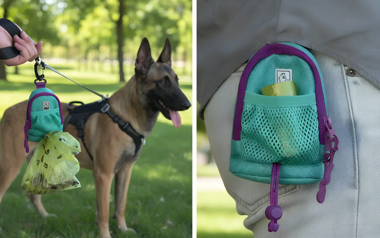 dog poop bag, dog poop bag holder, poop bag holder for leash