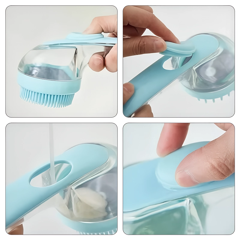 Escova de Banho para Cachorros com Dispensador de Shampoo em Silicone e Cabo Longo
