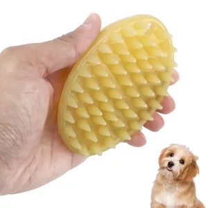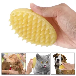 A escova de silicone é fácil de usar e suave para a pele do meu cão. Torna a hora do banho muito mais simples e ainda funciona como massajador.