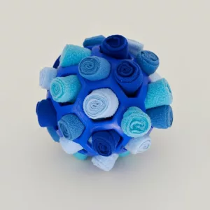Nossa cachorrinha adora essa bola snuffle. Ela passa horas procurando petiscos e isso realmente a mantém ocupada. Ela está mais calma agora graças ao faro e à busca.
