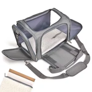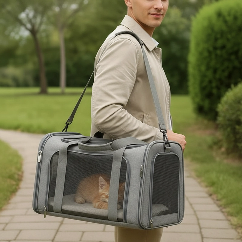 Usamos a bolsa para uma visita ao veterinário. Meu gatinho ficou calmo e quieto. Os zíperes duplos são muito práticos.