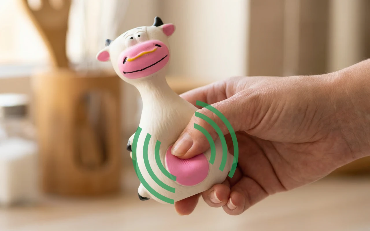 A borracha natural oferece resistência duradoura e toque suave. Cada salto e cada apertão é seguro tanto para gatos quanto para cães.