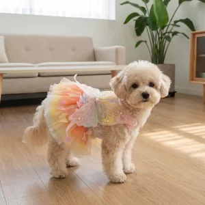 Comprei este vestido de fada para o meu cachorro e ela parece uma princesinha. Macio, leve e ela o usa feliz a tarde inteira.