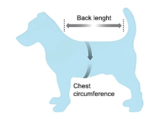 - 1. Meça o comprimento das costas do seu pet desde a base do pescoço até a cauda.