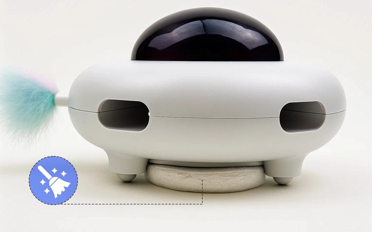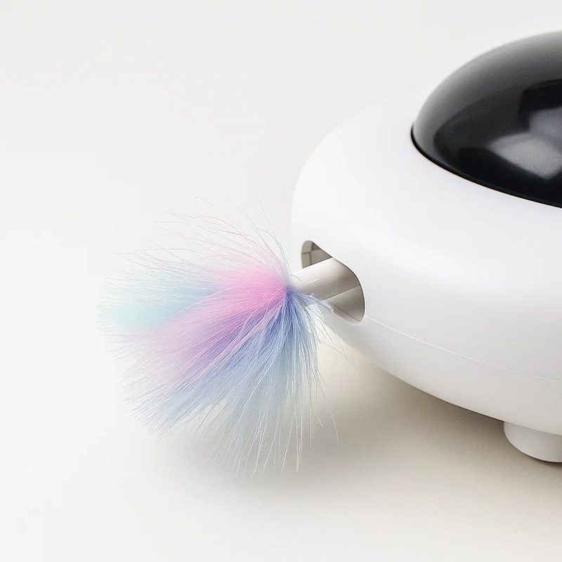 Feltro integrado coleta pelos soltos enquanto rola. O chão permanece mais limpo enquanto os pets gastam energia perseguindo penas.