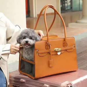 Bolsa de Transporte de Cachorro em Couro – Elegante Bolsa de Viagem para Pets