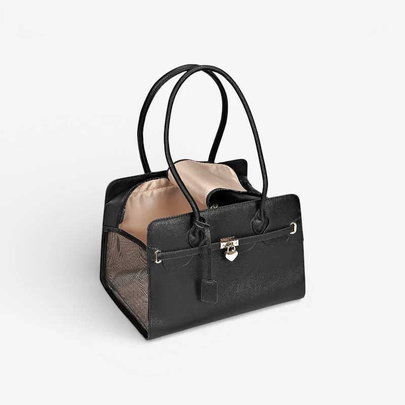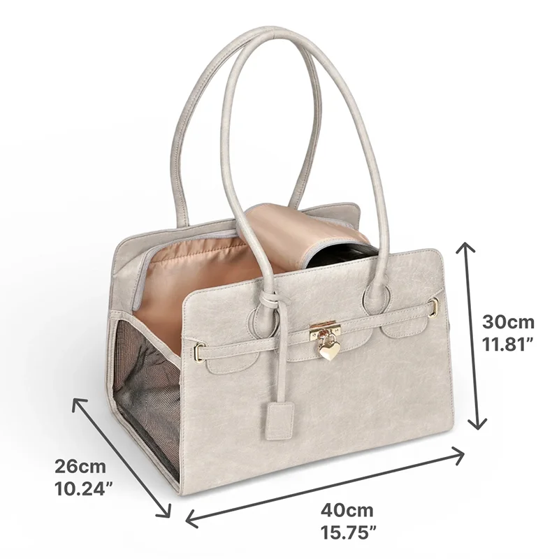 Esta bolsa é chique e resistente. Meu cachorro cabe perfeitamente e não fica apertado. As alças tornam fácil de segurar enquanto faço compras.