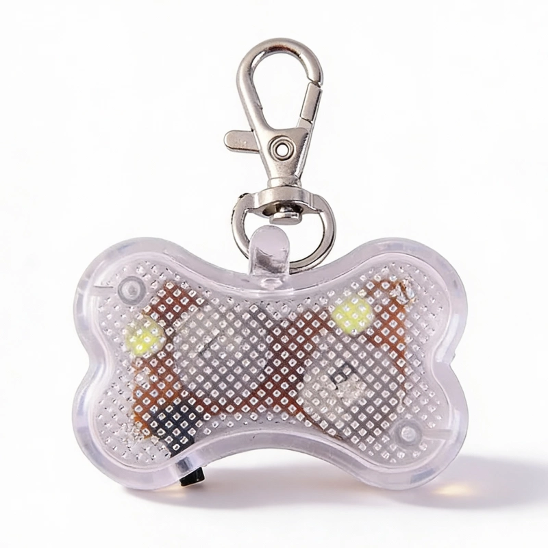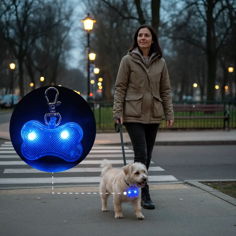 Este pingente de osso é incrível para nossos passeios noturnos. Meu cachorro fica visível e mudar a cor da luz é super fácil. Adoro o clipe—nunca cai!