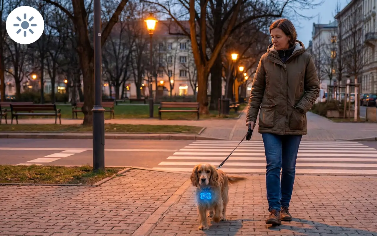 Luzes brilhantes ajudam outros a enxergarem seu amigo peludo facilmente. Escolha entre vários tons chamativos para cada passeio.