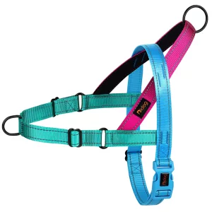 Estou muito feliz com o caimento no meu Frenchie. Ela não se incomoda de usar e percebi muito menos puxões. Amo as cores vivas e divertidas!