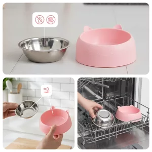 O inserto de aço removível permite uma lavagem rápida e completa. Comida e água frescas estão sempre prontas para o seu pet.