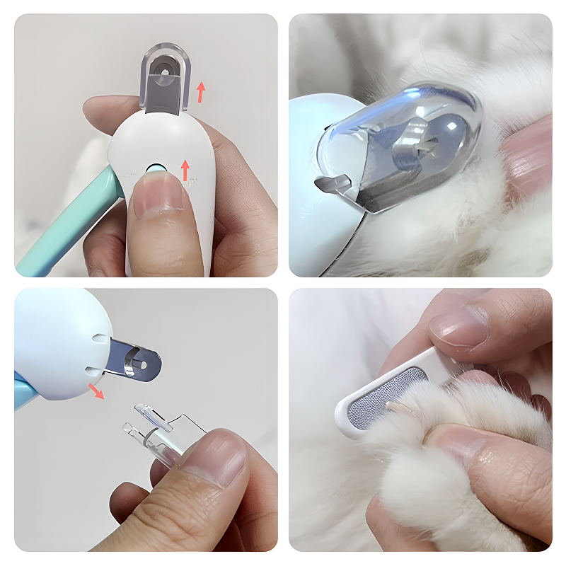 Gosto que este cortador serve tanto para o meu cachorro quanto para o gatinho. Lixar as unhas é suave e a limpeza é fácil porque tudo fica no lugar.