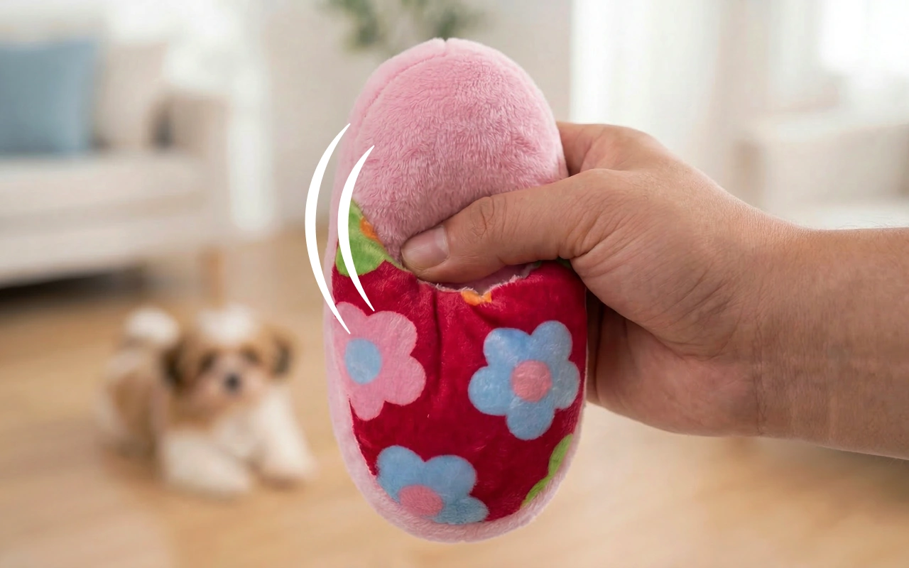 Brinquedo de Mastigar em Forma de Chinelo de Pelúcia com Apito para Cães