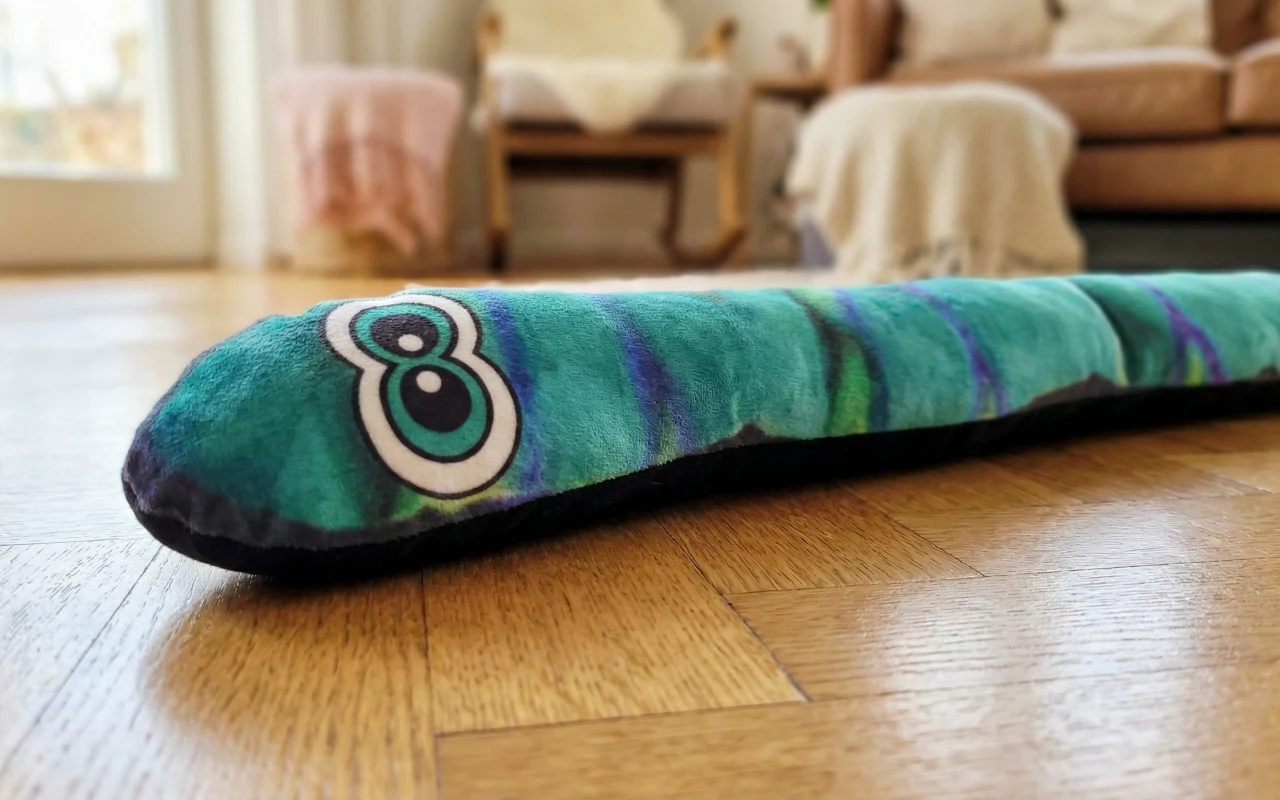 Essa cobra de pelúcia trouxe muita alegria para nossa filhote! Ela corre com ela e dorme abraçada a noite toda. Com certeza faz o rabinho balançar.