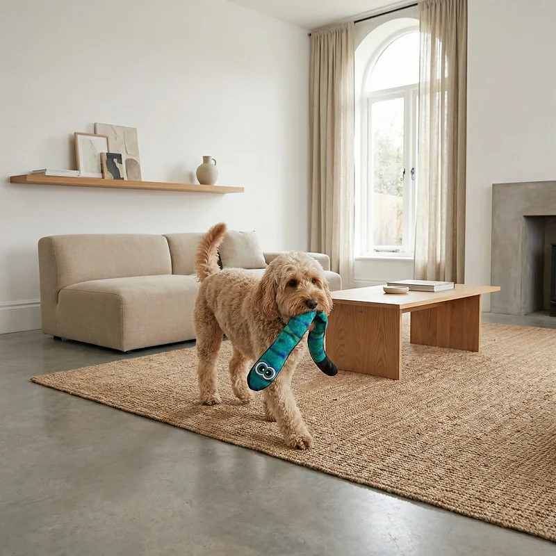 Meu cãozinho fica super animado assim que vê a cobra colorida. O material é suave para os dentes dele e ele brinca por horas sem se entediar.