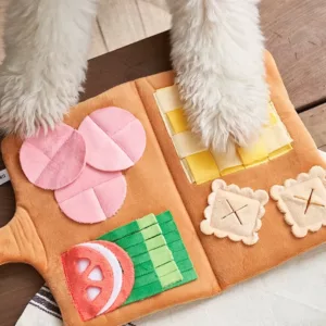 Nosso beagle se diverte muito procurando o jantar entre os tecidos fofos. Ele não engole mais a comida, o que ajuda bastante o estômago. Recomendo muito!