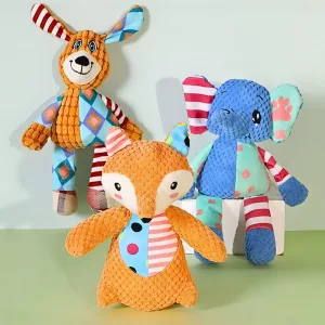 Quando mordido ou apertado, o brinquedo de pelúcia Primdog emite um som de apito. Esse som estimula a curiosidade e a diversão dos cães. Eles vão passar horas tentando descobrir de onde vem.