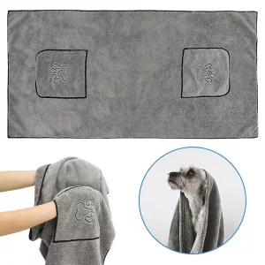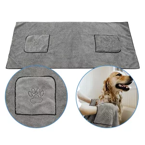 A nossa toalha de banho tem dois bolsos, o que permite um processo de secagem fácil. Pode inserir as mãos nos bolsos para esfregar o seu animal de forma completa.