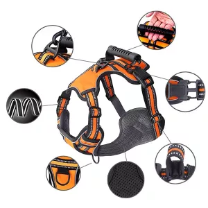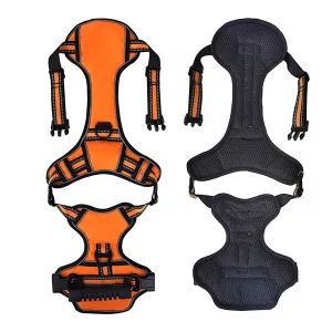 Com este arnês, a segurança está em primeiro lugar. As faixas refletoras tornam o seu cão visível à noite, proporcionando-lhe tranquilidade.