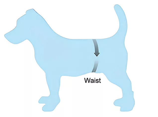 • 1. Enrole a fita métrica ao redor da parte mais estreita do corpo do seu cão na frente das patas traseiras.