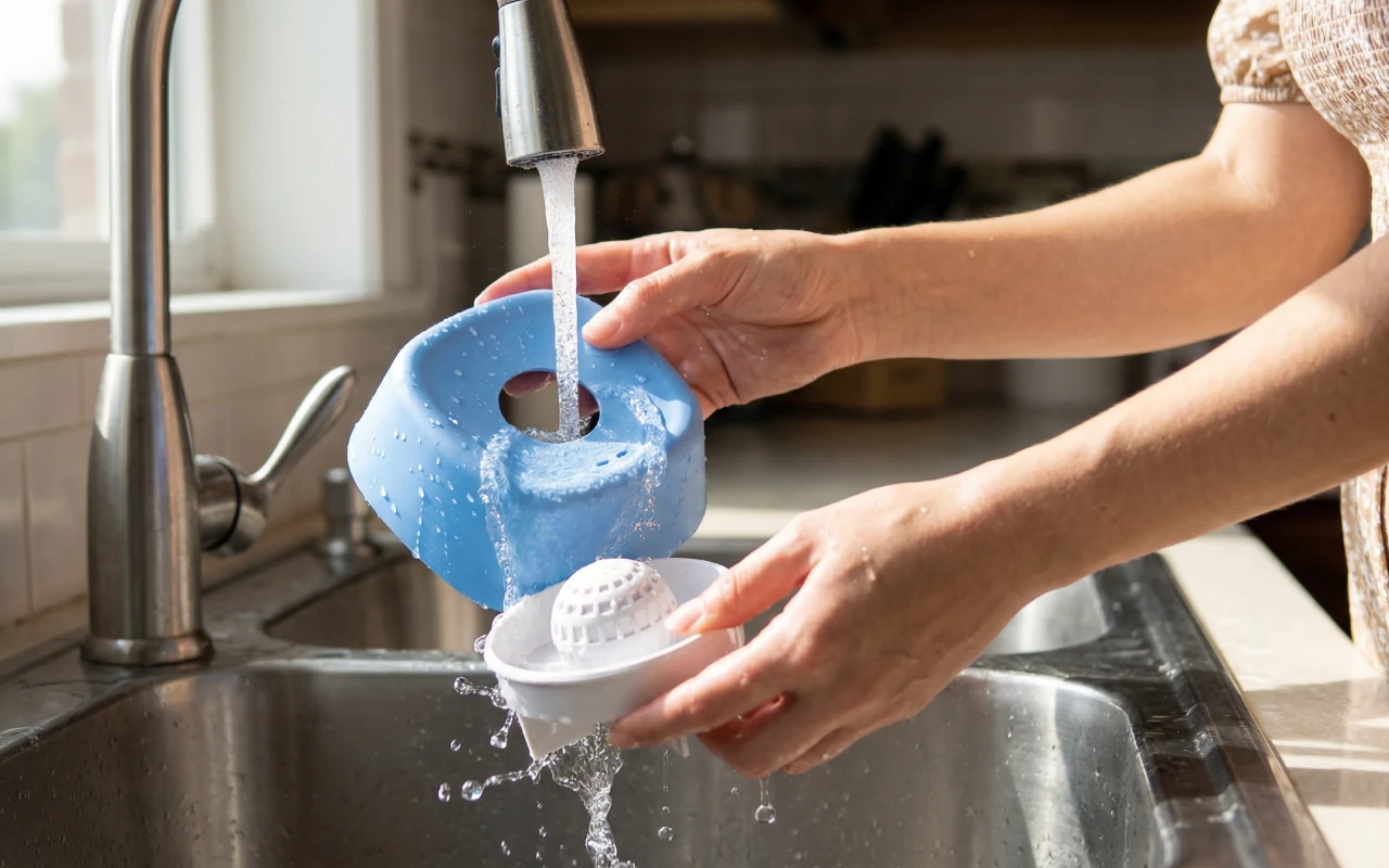 Nossa cachorra sempre engolia água rápido e tossia, mas agora ela bebe com calma. A limpeza é simples, pois posso colocar o pote na lava-louças. Muito prático!